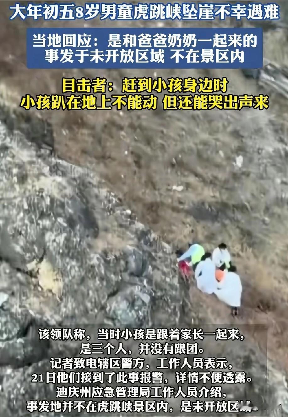 云南虎跳峡8岁男童坠崖,他的爸爸就是罪魁祸首。 第一,家长本不该把一个8岁的孩