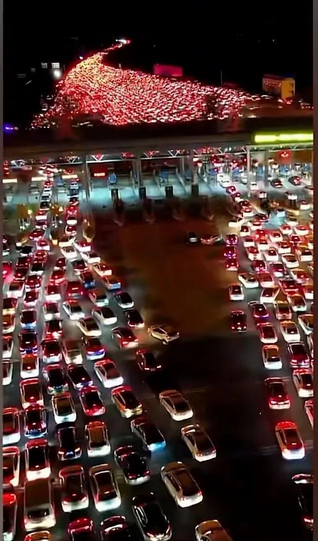 2月22日,正月初六,春节假期收官,全国春运迎来最猛返程高峰。亚洲最大的安徽吴庄收费站,成为这场归途大考的核心战场。夜幕降临,24个出口全部开启,万千车灯连绵不绝,在皖苏省界上空铺展成一片流动的红色星河,航拍画面震撼全网,刷屏社交平台。 作为沪陕、沪蓉高速交汇的皖苏省界关键节点,吴庄收费站是中西部往返长三角的必经门户,承载着海量跨省车流。初六当天,返程车流呈井喷式增长,平日车流量的三倍峰值压境,管理部门迅速启动最高等级保畅预案,全线开启复式收费、手持终端,ETC准自由流系统全速运转,保障车辆快速通行。 现场车流虽密却不乱,交警、路政、收费员全员在岗,在寒风中不间断疏导指挥。便民服务台同步上线,热水、应急药品、路况咨询一应俱全,沿线服务区快充全覆盖,移动充电设备机动增援,化解新能源车主补能焦虑。不少车主原本做好长时间排队准备,却意外实现快速通关,纷纷点赞中国交通的硬核实力与暖心服务。 这片红色星河,是千万游子的奔赴,是阖家团圆后的再出发,后备箱里的家乡特产,车厢内的新春期许,都藏着中国人最朴素的牵挂与奋斗。从36车道的基建底气,到跨省联动的调度智慧,吴庄收费站用高效与温度,交出了一份亮眼的春运答卷,也定格下2026年春运最动人的归途风景。