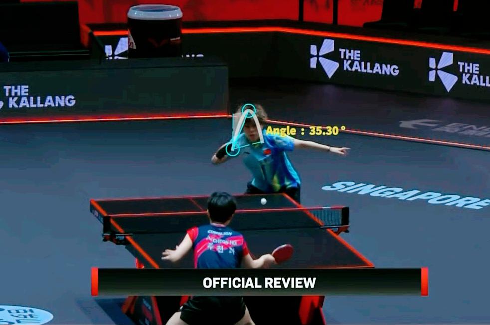 突发!大迪被裁判直接罚分了! 侯英超都懵了, 大迪请求了鹰眼, 结果显示大迪回抛35度, 维持扣分。 注意点吧, 这次新加坡大满贯, 裁判对于回抛, 判罚很严格。 第一局 两人3:3开局, 大迪连得4分, 7:3领先, 9:4领先。 结果此时裁判直接罚分, 大迪受到了影响, 朱芊曦10:9反超, 大迪追到了10:10 最后13:11拿下这一局。