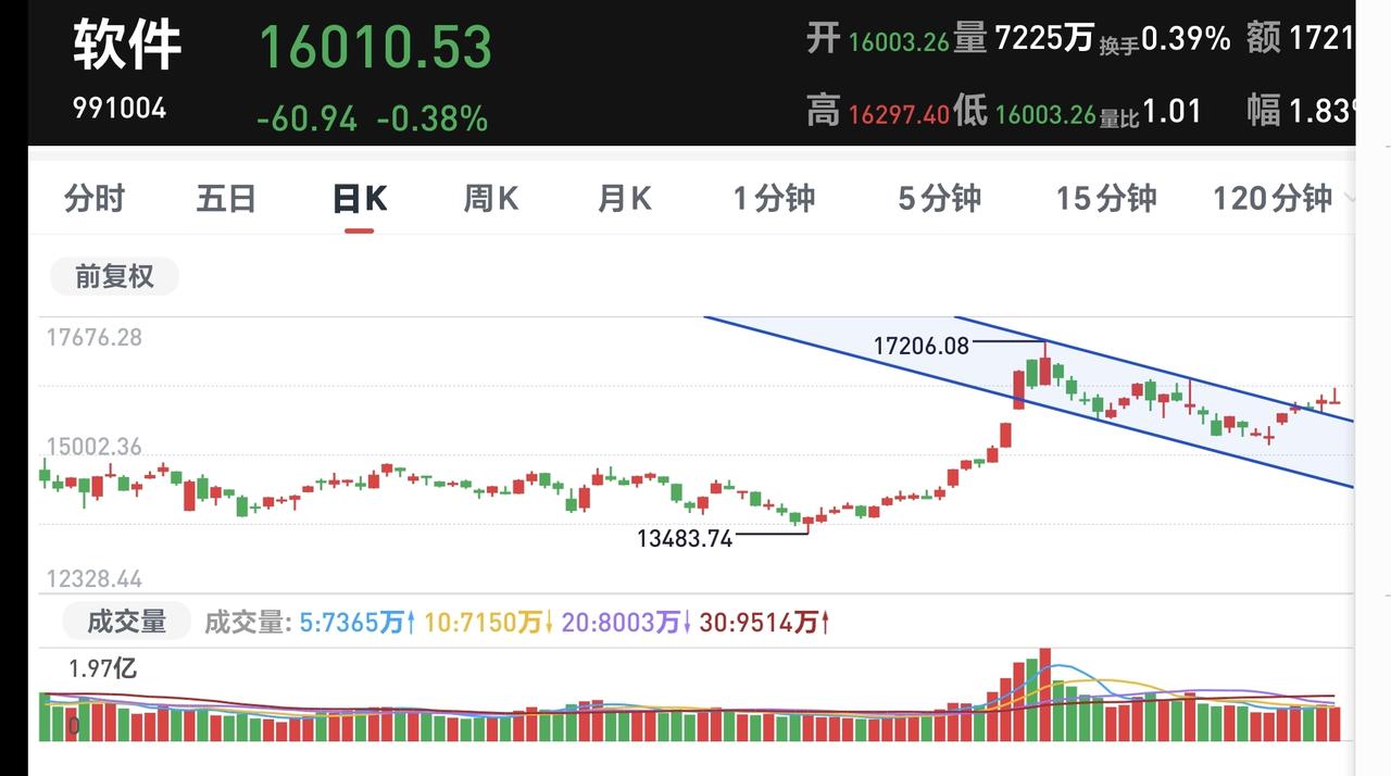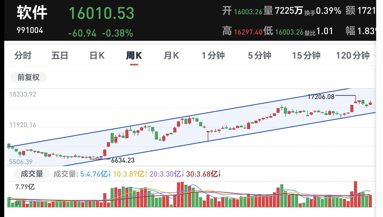 基金:AI应用板块应该怎么办 香港市场今天大涨,恒生指数上涨了2.53%,国企指数上涨了2.65%,恒生科技指数上涨了3.34%,韩国市场今天也是上涨收盘的时候,上涨了0.65%,是一个冲高回落的走势。 香港市场今天上涨幅度最大的三个板块是:固态电池板块,智能家居板块,黄金板块,下跌幅度最大的三个板块是:化妆美容板块,殡葬板块,数字货币板块。 AI应用板块今天是下跌,板块下跌了1.07%,来看一下我们AI应用板块,也也就是软件板块的情况。 AI应用板块春节之前突破了日线级别短期下跌通道的上轨线,但突破之后是一个震荡走势。春节之前最后一个交易日是带有上影线的小阳线,到现在为止,还不能确定这个突破是有效突破,明天观察这个板块的走势,看看能不能确定春节之前的突破是真突破。 AI应用板块周线级别处于上涨通道中,小幅度的上涨和下跌都改变不了这样的上涨趋势,长线持有的人必须要坚定持有,只有跌破周线级别上涨通道下轨线的时候,才可以考虑要不要止盈出来观望。 今天香港市场大涨,但AI应用板块逆势下跌,这并不是一个好现象,我们明天的走势会有影响的,持有的人可以继续持有,没有进场的人还需要继续等待。