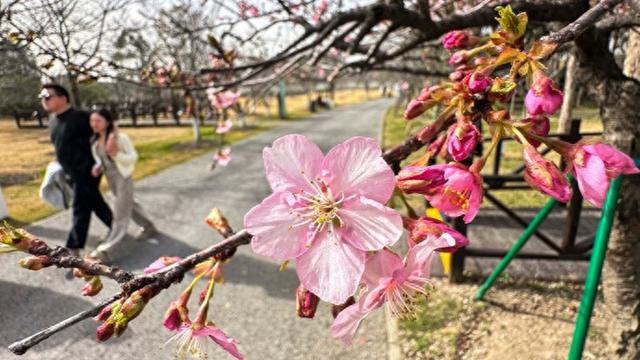 马年春节小长假最后两天,申城迎来晴好天气,气温攀升至20摄氏度以上。和煦春风为城市添上浓浓春意,市民纷纷走出家门,踏青出游。沪上各大公园成为热门打卡地。各大公园推出赏花、非遗互动、生肖主题体验等丰富新春活动。早樱、梅花等早春花卉次第含苞,处处洋溢着春日生机。