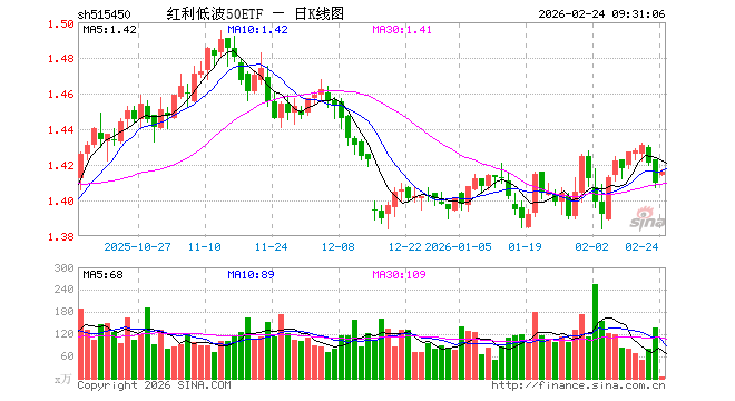 2月24日,红利低波50ETF(515450)开盘涨0.28%,报1.414元。红利低波50ETF(515450)重仓股方面,养元饮品开盘涨1.11%,陕西煤业涨1.14%,雅戈尔涨0.41%,中国外运涨0.34%,格力电器涨0.60%,洋河股份涨1.17%,双汇发展跌0.11%,南山铝业涨2.39%,中国神华涨0.68%,中国石化涨1.57%。