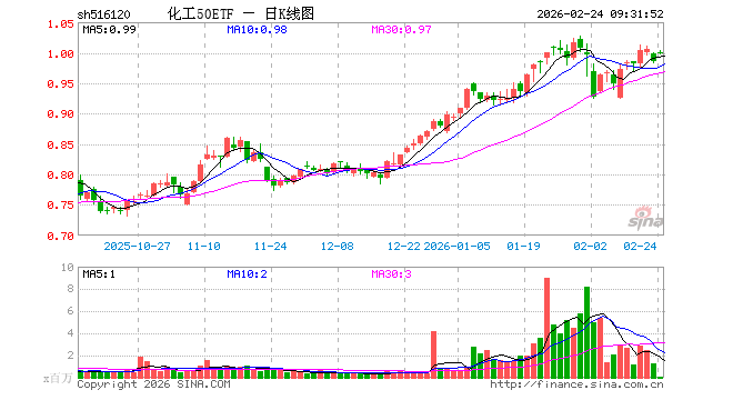2月24日,化工50ETF(516120)开盘涨1.42%,报1.000元。化工50ETF(516120)重仓股方面,万华化学开盘涨1.67%,盐湖股份涨3.59%,藏格矿业涨2.13%,天赐材料涨0.99%,巨化股份涨1.21%,恒力石化涨1.75%,华鲁恒升涨1.49%,宝丰能源涨1.82%,云天化涨3.58%,金发科技涨4.03%。