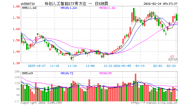 科创人工智能ETF易方达(588730)业绩比较基准为上证科创板人工智能指数收益率,管理人为易方达基金管理有限公司,基金经理为刘文魁,成立(2025-01-16)以来回报为70.79%,近一个月回报为2.62%。