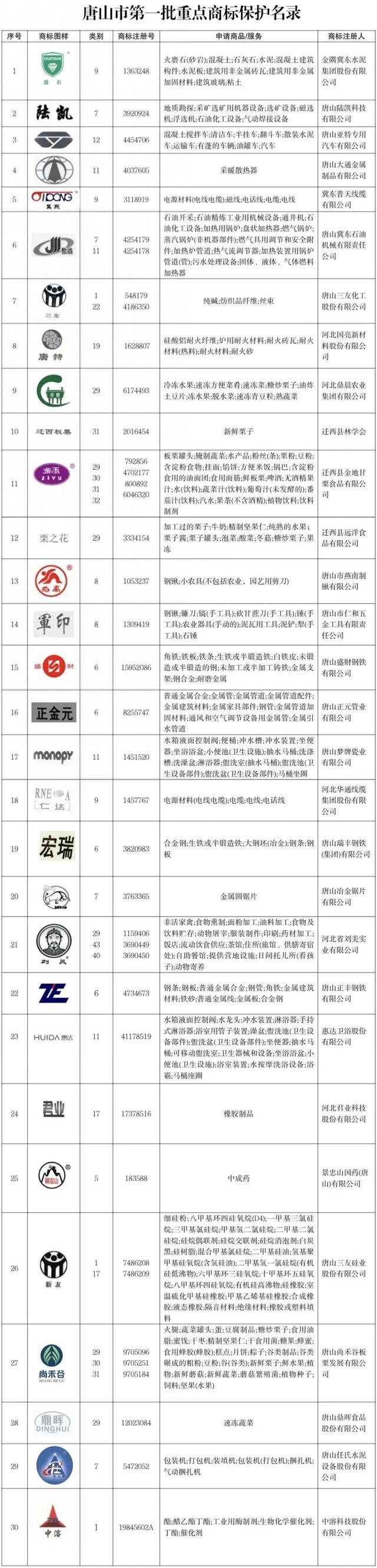 2月11日,唐山市市场监管局(知识产权局)正式发布《唐山市第一批重点商标保护名录》,进一步加大注册商标专用权保护力度,强化知识产权全链条保护。