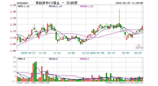 2月25日,截止午间收盘,新能源车ETF基金(516660)涨2.50%,报1.188元,成交额434.60万元。新能源车ETF基金(516660)重仓股方面,比亚迪截止午盘涨1.07%,宁德时代涨0.99%,汇川技术跌0.56%,三花智控跌2.16%,华友钴业涨6.55%,亿纬锂能涨2.98%,赣锋锂业涨2.94%,天赐材料涨2.95%,长安汽车涨0.27%,天齐锂业涨3.88%。