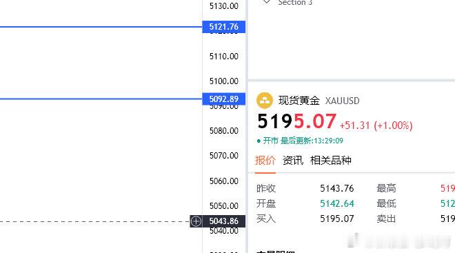 第二单;5195直接冲了,看5220(个人观点,仅供参考!)黄金 金价
