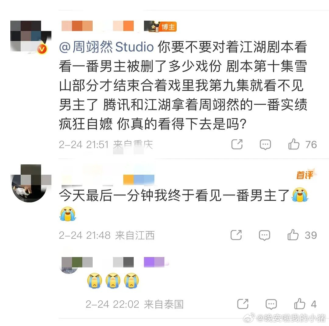 周翊然粉丝在维权,男主戏份被删了