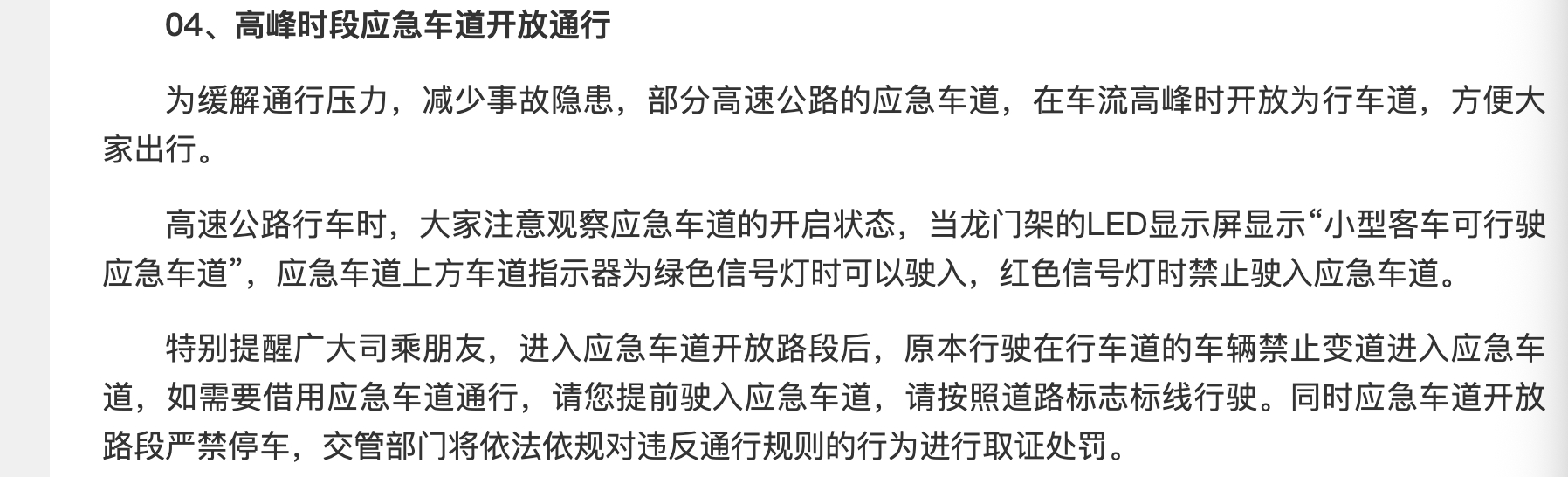 【女子高速随手拍举报20多辆车 交警回应:正在处理中】其实今年春节假期,在河北和山东不少高速路段都允许小客车驶入应急车道,而且在龙门架 LED 屏都有显示。河北:京台高速(G3)、京沪高速(G2)、京港澳高速(G4)、青银高速(G20)、首都环线高速(G95)等省界、易拥堵路段。山东:京台高速(G3)鲁冀界、京沪高速(G2)、济广高速(G35)、青银高速(G20)等省界、四车道变两车道瓶颈段。