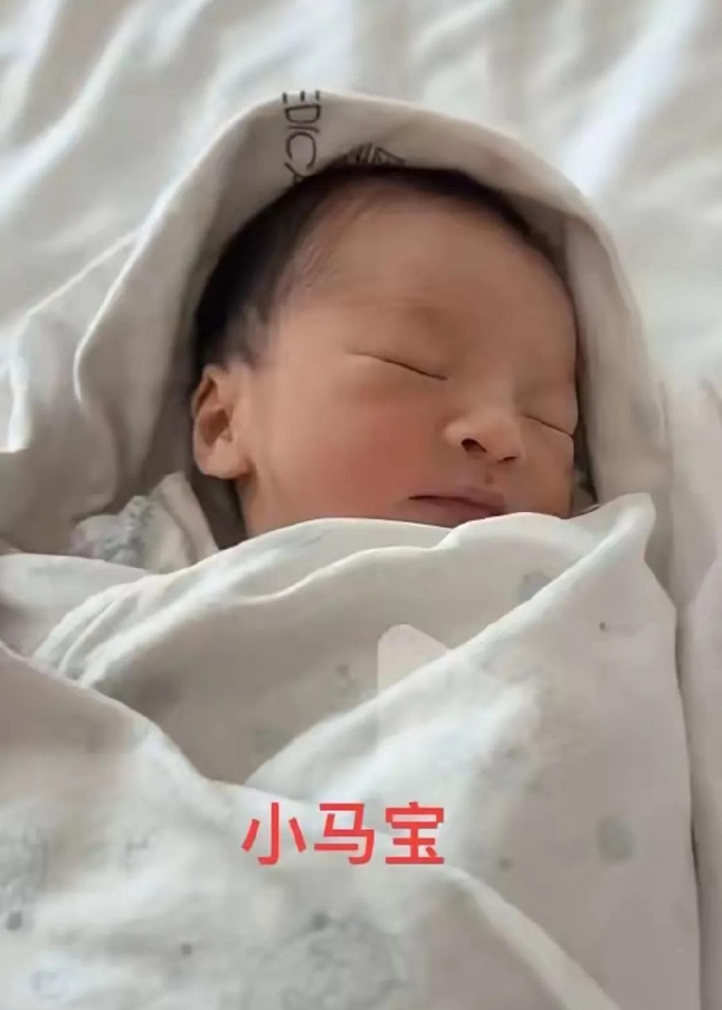 马筱梅的儿子睁开眼睛了,他遗传了妈妈马筱梅的元宝嘴。他的嘴巴又大,耳朵也是反耳,
