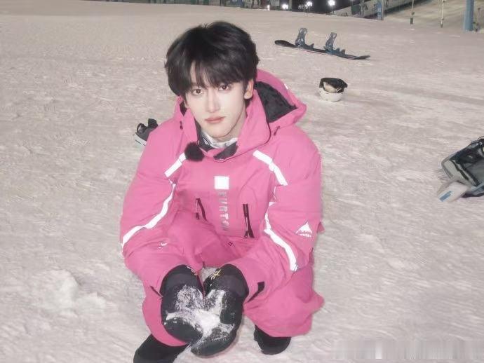 邓佳鑫第一次挑战单板 看到邓佳鑫滑单板真的被治愈,第一次挑战虽然有点新手感,但整个人活力满满,粉色在雪场里超亮眼。