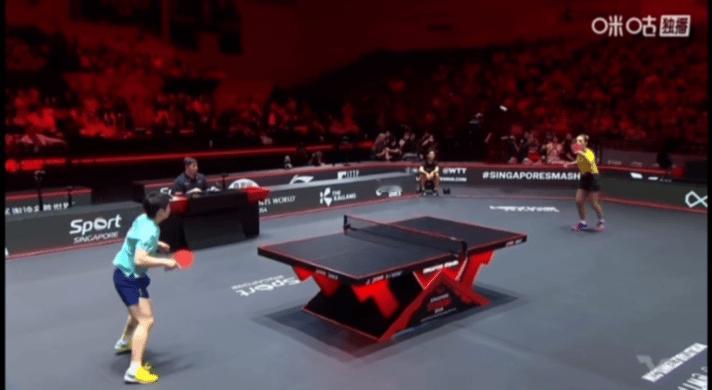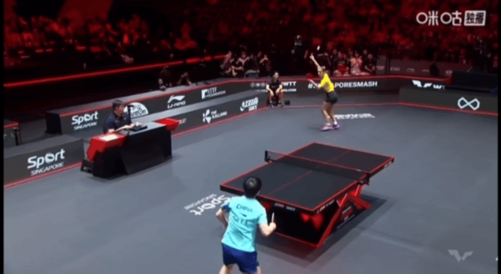 孙颖莎3-1萨马拉,顺利晋级,最后一个球结束,萨马拉笑了。 新加坡大满贯女单1