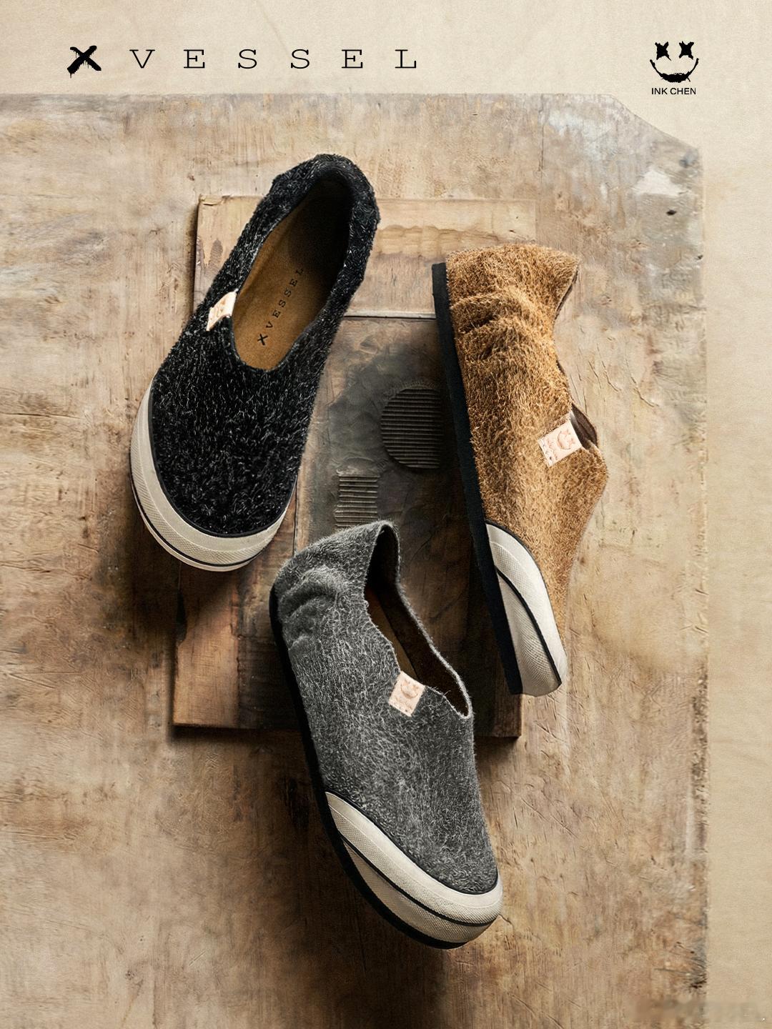 xVESSEL x INKCHEN 联名款「头等舱」甄选牛皮经由特殊工艺雕琢,肌理深浅错落手工制作形成的褶皱,饱含温润的匠心之道V型鞋口勾勒出恰到好处的弧度,穿脱之间,自有从容橡胶轻轻包裹鞋头,既是视觉的延伸,也是无声的守护腰果花底纹低调隐于足下,支撑每一个从容的瞬间INKCHEN标志性徽章以微笑之姿隐于细节,为解构内核注入一丝明朗态度黑、灰、棕三种配色,为同一份质感写下不同注解