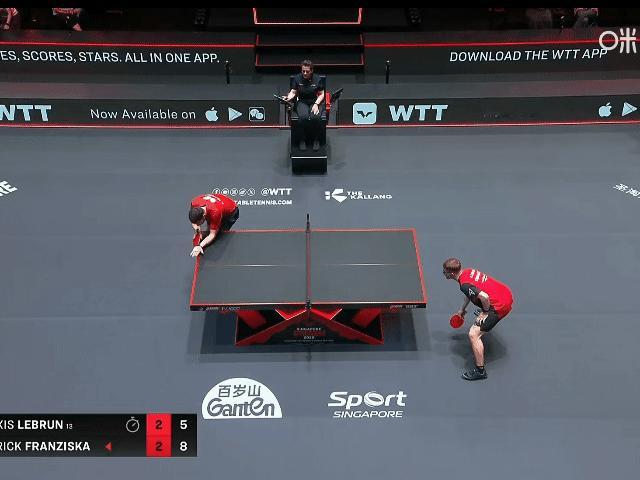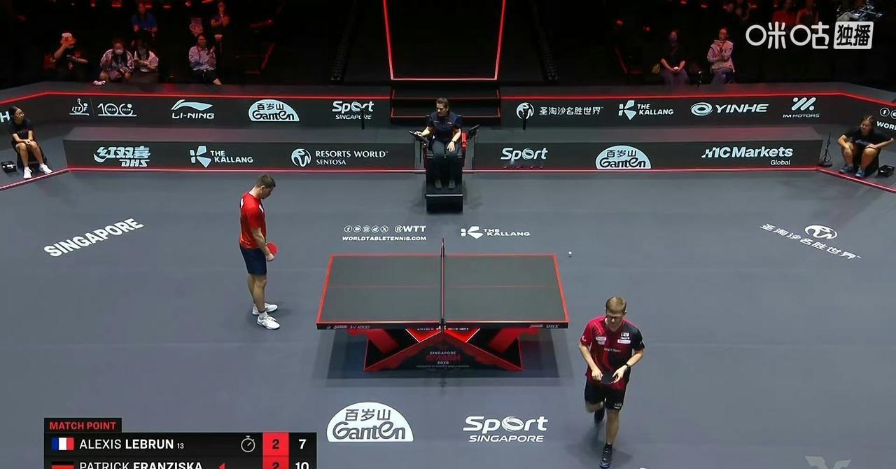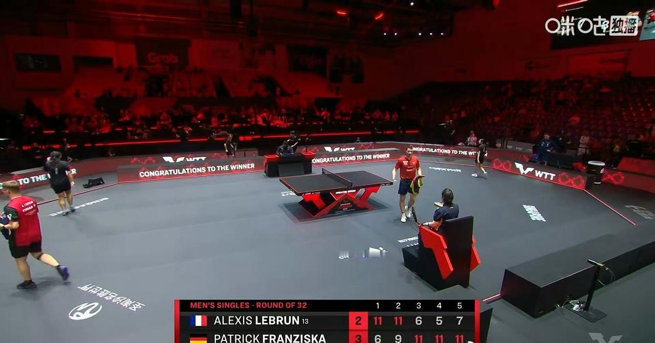 大勒布伦🇫🇷被让二追三了[吃瓜群众], 弗朗西斯卡🇩🇪晋级男单十六强! 刚刚,德国老将弗朗西斯卡🇩🇪让二追三,3-2击败大勒布伦🇫🇷,晋级2026WTT新加坡大满贯男单十六强。 五局比分为:弗朗西斯卡🇩🇪:6-11,9-11,11-6,11-5,11-7。 决胜局的时候,裁判破天荒地撤回了一个鹰眼判罚,原来是因为挑战的是高度,裁判把33cm看成回抛角度了,所以判挑战失败,也罚分了,但其实33是高度,并且是挑战成功了, 小弗一看咋给罚分了,就纠缠了一会儿[允悲]。