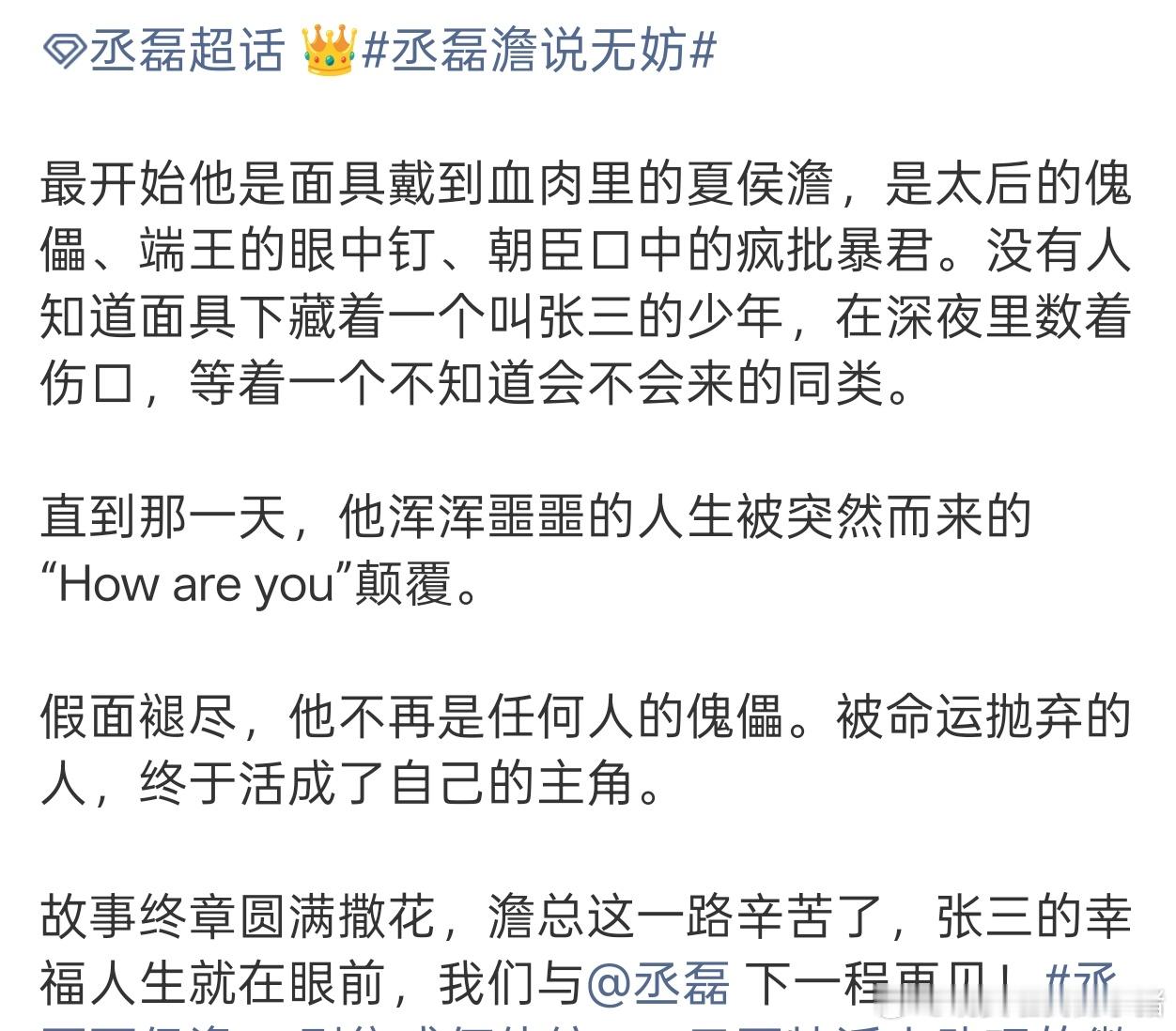 感谢丞磊带来最好的夏侯澹,演技也是观众有目共睹的