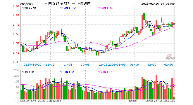 2月26日,科创新能源ETF(588830)开盘跌0.46%,报1.716元。科创新能源ETF(588830)重仓股方面,晶科能源开盘跌0.92%,阿特斯跌0.61%,天合光能涨0.00%,容百科技涨1.85%,大全能源跌0.74%,厦钨新能涨0.05%,嘉元科技跌0.52%,天奈科技涨0.75%,孚能科技涨1.22%,固德威涨0.37%。