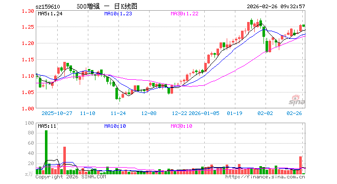 2月26日,500ETF增强(159610)开盘涨0.08%,报1.255元。500ETF增强(159610)重仓股方面,高德红外开盘跌0.77%,厦门钨业涨1.14%,桐昆股份跌0.54%,深信服涨0.09%,奥比中光跌0.38%,华安证券涨0.15%,梅花生物涨0.00%,福田汽车跌0.31%,西部证券涨0.25%,百济神州跌1.51%。