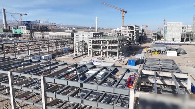 春节假期刚刚结束,走进甘肃巨化高性能硅氟新材料一体化项目六标段施工现场,只见一派繁忙景象。施工人员正有序开展钢结构焊接、构件安装等作业,焊接声、切割声、机械轰鸣声此起彼伏,交织成一首激昂奋进的建设乐章。