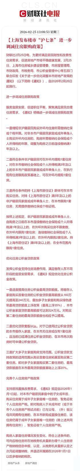 上海发布楼市“沪七条”进一步调减住房限购 上海房价总会稳住的。以后小孩越来越少,二三线养不起优质资源,有钱人还得往上海跑,享受有质量的服务,读书,医疗,文化艺术资源,都没法比。