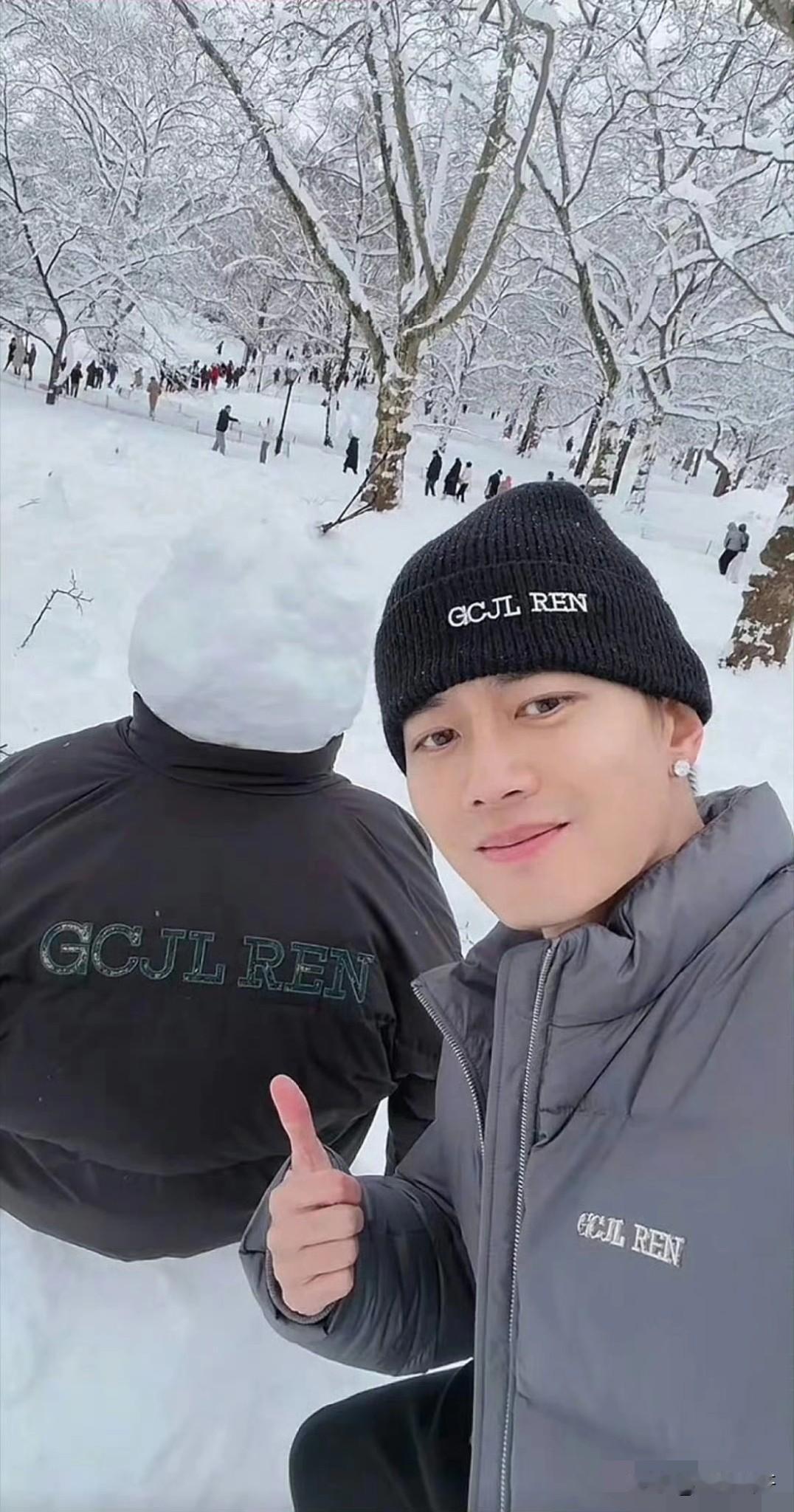 跟着任嘉伦沾光啦! 此生从未见过如此大雪, 跟着任嘉伦的镜头看到了, 有点震憾哦! 任嘉伦此次国外行, 小溜达也是出圈了, 到处都有它的身影, 送给国外的朋友, 还有朋友张口要的, 任嘉伦走到哪里都亲身穿着, 小溜达也火到国外了。@任嘉伦