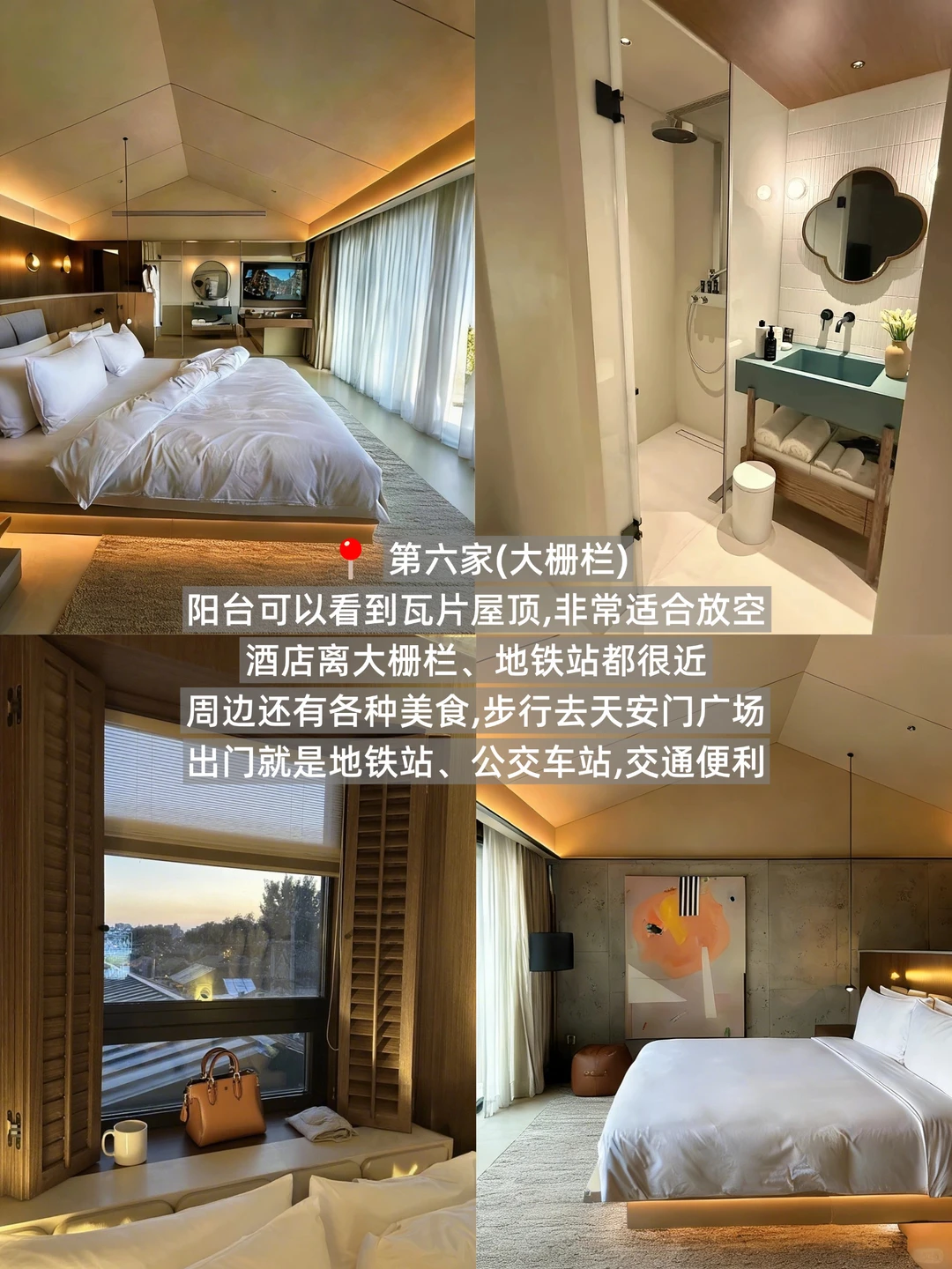 6️⃣阳台可以看到瓦片屋顶,非常适合放空,酒店离大栅栏、地铁站都很近,附近烟火气很足/300💰