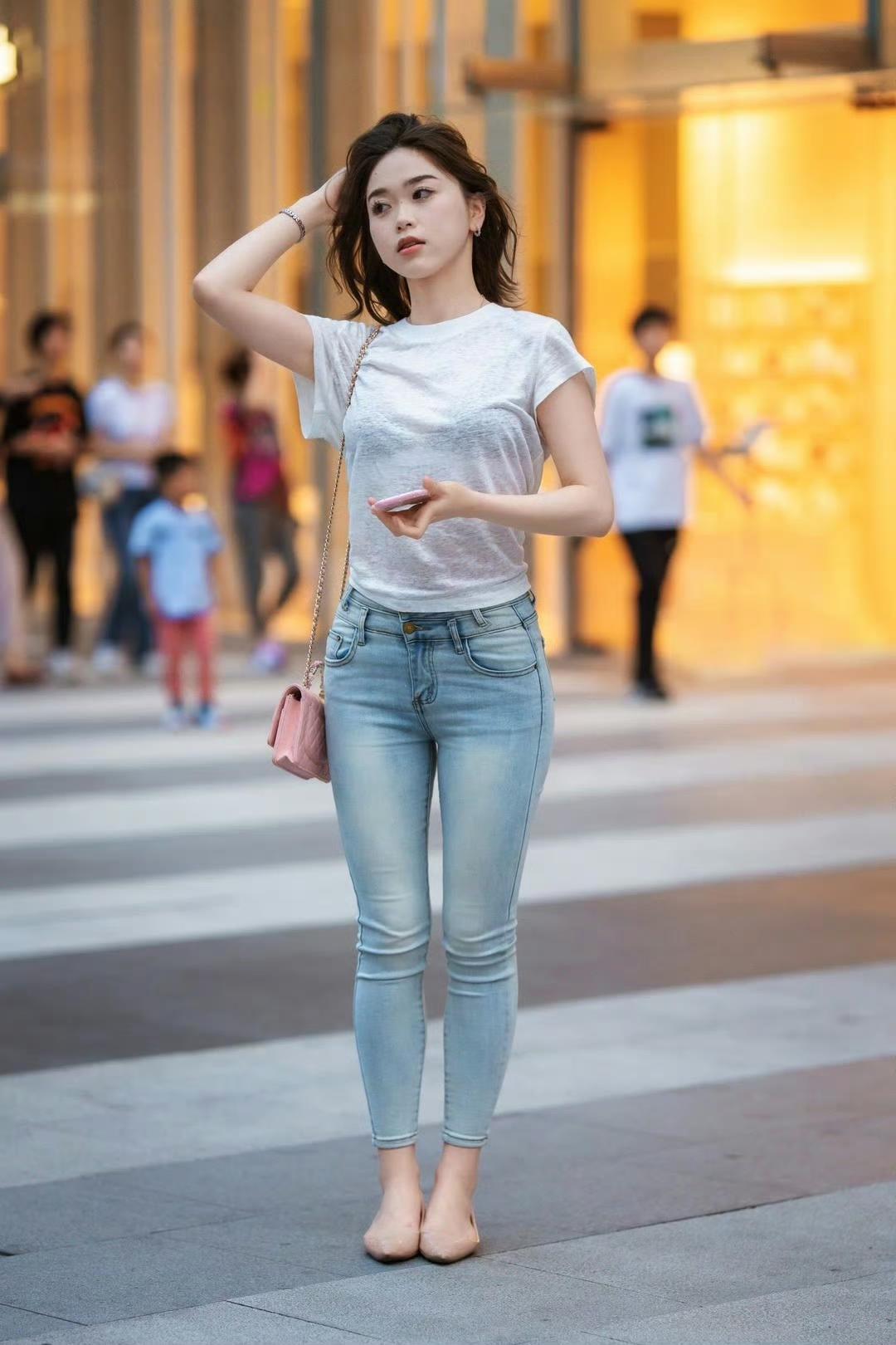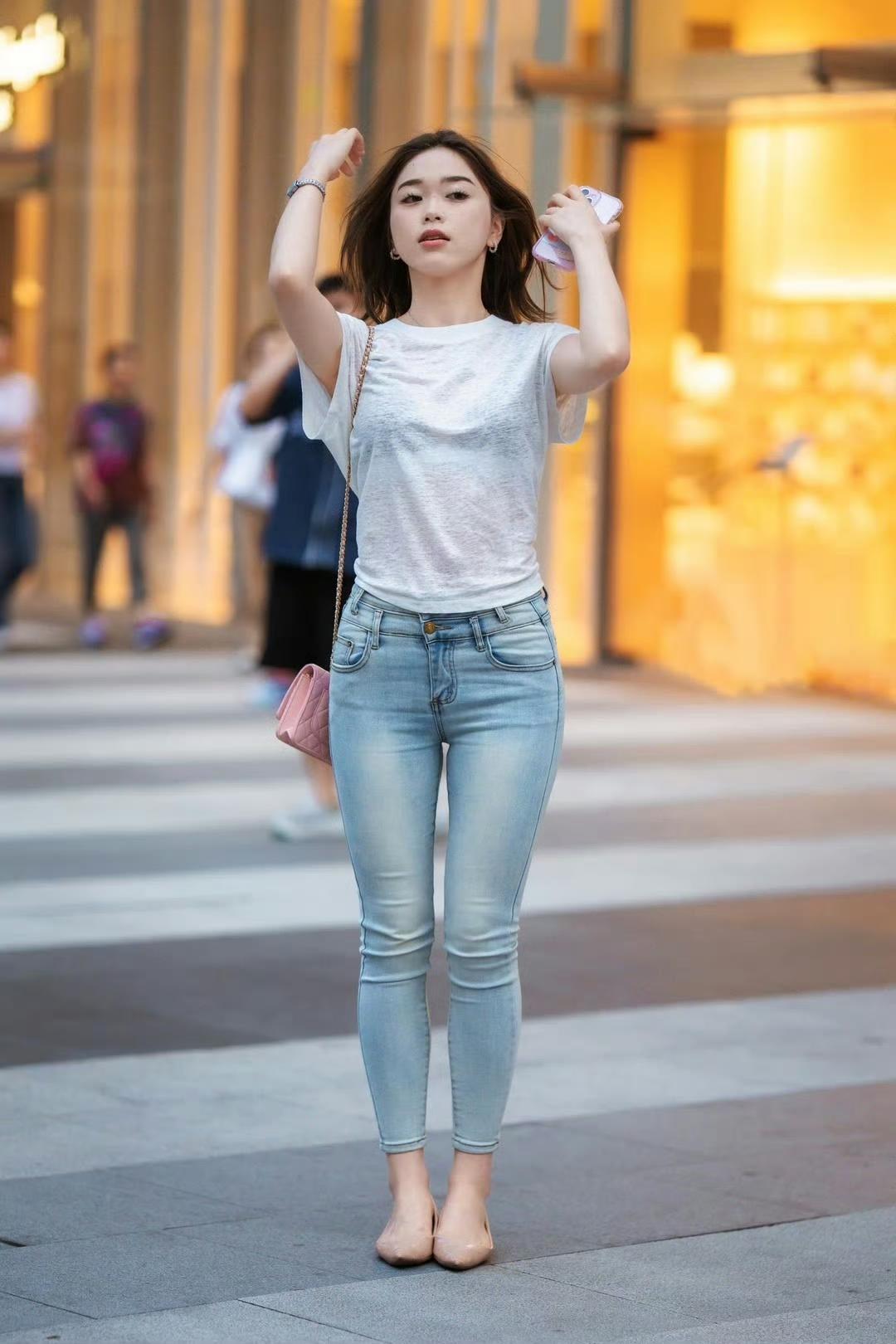 白T恤配牛仔裤真的永不过时!简约干净还特别显精神,塞衣角+九分裤的小细节,直接把