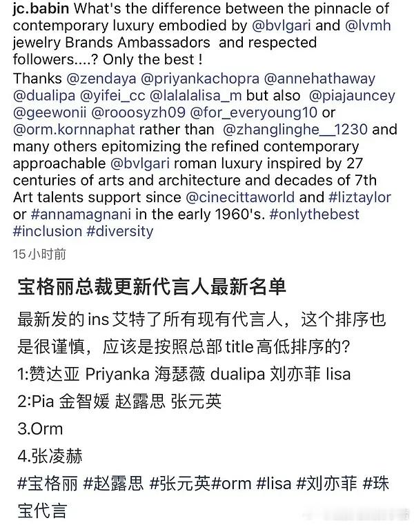 张凌赫真的是奢牌宠儿来的,宝格丽总裁ins更新代言人最新名单,是唯一一位男星面孔