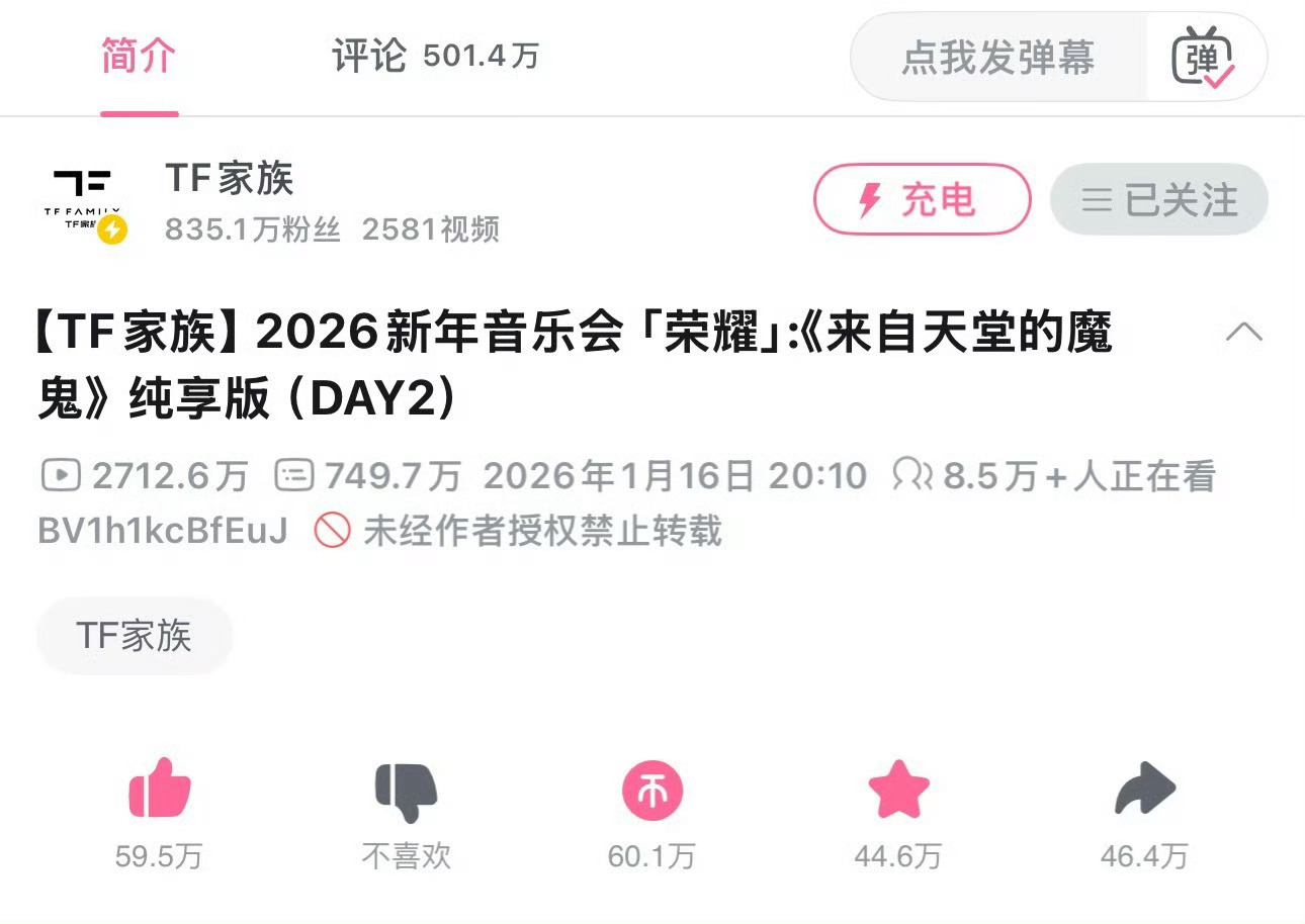 橹穆双人舞台《来自天堂的魔鬼》B站播放量破2711w🩵🩷