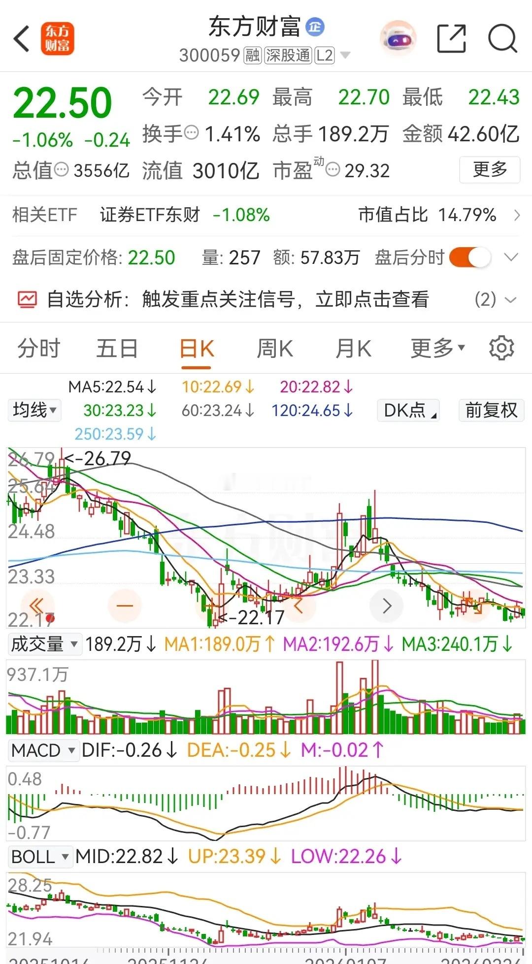 东方财富和中信证券今天又跌了,东方财富被主力资金净卖出7.5191亿元,而中信证券则是连续七天被主力资金净卖出,今天的净卖额为6.7620亿元。东方财富今天今天低开低走,收盘时下跌了1.06%,收盘报价为22.50元。在资金流向上,今天被主力资金大幅净卖出,近五个交易日得净卖出金额为 18.2114 亿元。从走势上看,目前依然是处于破位态势之中,相对来说,当前的股价基本上是快要到地板了。