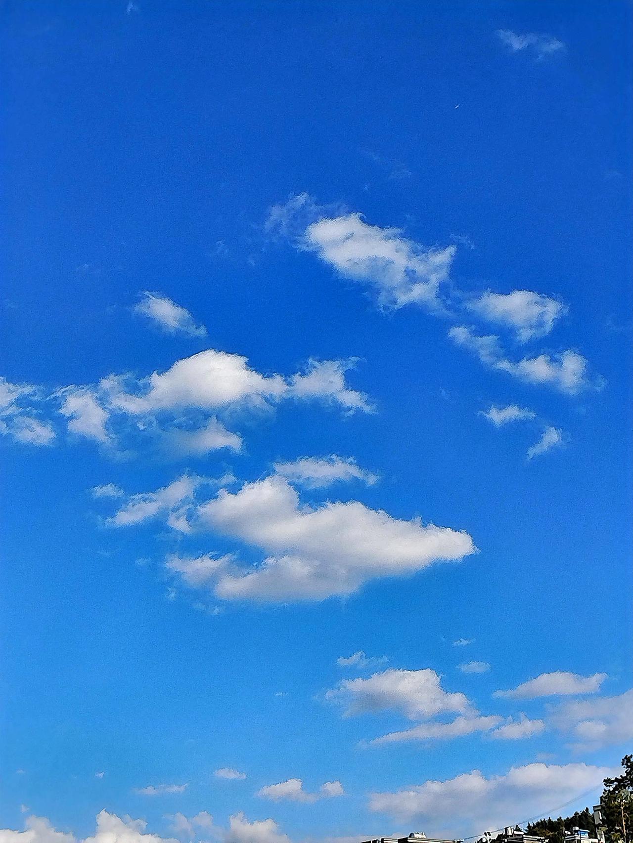 蓝天白云,心旷神怡,大自然的美好尽收眼底!🌤️💙在这美若画卷的蓝天白云之下,思绪也似生出了翅膀。每一朵云皆是大自然巧夺天工的杰作,有的仿若奔腾的骏马,于天空这片广袤草原肆意驰骋;有的好似轻盈的仙女,于天际翩翩起舞。 微风拂过,云朵悠悠变换形状,好似在与人玩一场奇妙的捉迷藏。阳光透过云缝倾洒,形成一道道金色光柱,宛如连接天地的桥梁。 置身此般美景中,一切烦恼与疲惫皆被抛到九霄云外。只盼时间在此刻定格,让自己永浸于蓝天白云带来的宁静美好里。 不知你们镜头下的天空有何独特魅力?快分享出来吧!😘