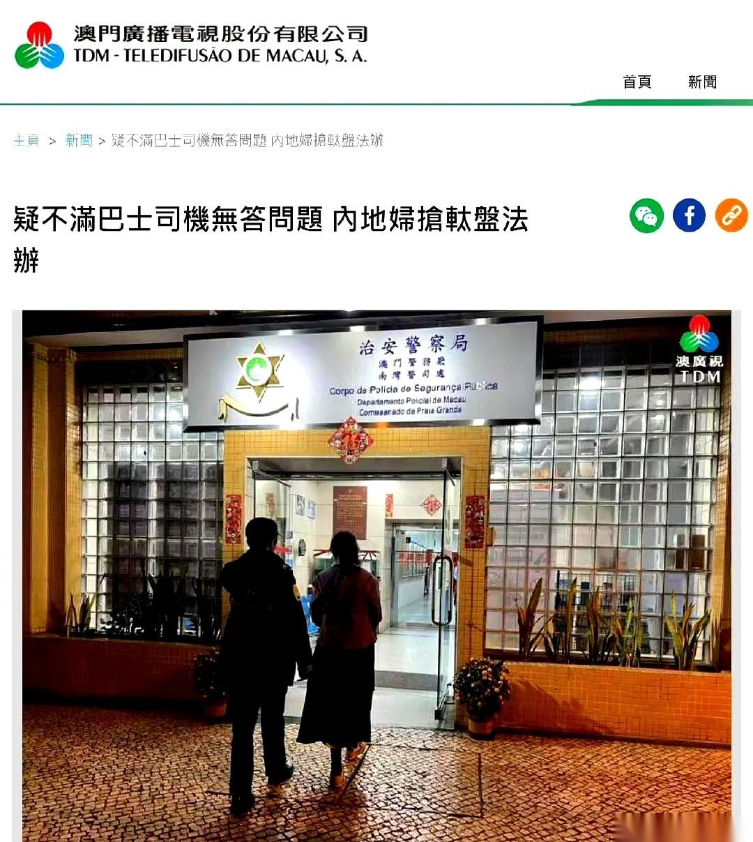 我真是活久了什么都能见着。 就因为司机没回答她问路,一个60岁的阿姨,直接上手抢了正在开的公交车方向盘。 还是在大年初二的澳门。 满车人啊。 我真的想不通,到底是什么样的脾气,能干出这种事? 一句话没回你,你就要拉着一车人的性命给你陪葬吗?你以为方向盘是你家电视遥控器,按一下就能换台? 幸好司机大哥心理素质过硬,紧急刹车,车虽然晃了一下,但人没事。 然后报警,稽查员来,把这位“武德充沛”的阿姨请了下去。 整个过程也就10分钟,但对车上的人来说,这10分钟可能比一个世纪都漫长。 真的,很多人活了一辈子都没搞明白一件事: 地球不是为你转的,没人有义务惯着你的臭脾气。 把自己的情绪看得比天大,把别人的生命当成儿戏。 这种人,不是坏,就是蠢。 可惜,社会可不会像你家人一样,永远包容你。 进去了,好好反省吧。