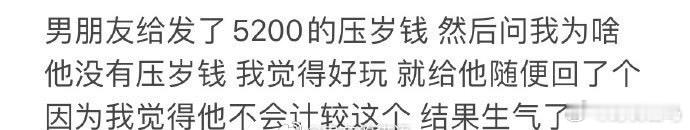 男朋友给我发5200压岁钱,我回了几块结果生气了