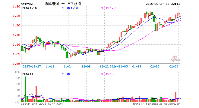 2月27日,500ETF增强(159610)开盘跌0.08%,报1.256元。500ETF增强(159610)重仓股方面,高德红外开盘跌1.80%,厦门钨业涨0.00%,桐昆股份跌0.71%,深信服跌0.25%,奥比中光跌0.93%,华安证券跌0.31%,梅花生物涨0.00%,福田汽车涨0.00%,西部证券跌0.25%,百济神州跌1.94%。