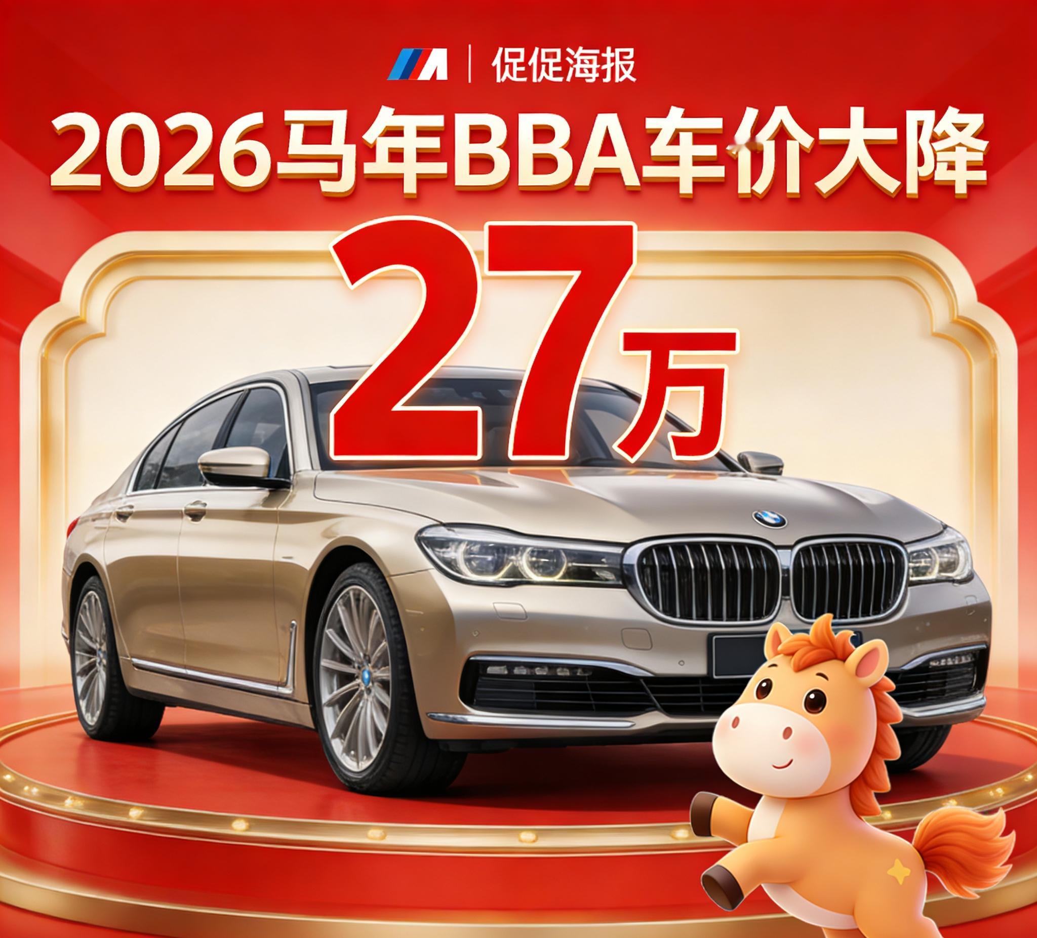 宝马7系狂降27万!BBA降价求生,是市场洗牌更是时代转向 2026开年,宝马7系最高直降27万元,BBA全线“骨折价”刷屏热搜。曾经加价难求的豪华车,如今以价换量,标志着燃油豪华霸权彻底松动。 我认为,BBA降价是竞争倒逼、战略自救,更是产业升级的必然。国产新能源强势围剿,30万以上高端市场国产品牌占比超八成,BBA份额持续下滑;清燃油库存、为电动化转型铺路,降价是最直接的止损手段。降价拉动销量与产业链运转,稳定上下游就业,并非行业衰退,而是良性重构。 有人担忧降价引发失业,实则多虑。价格战加速落后产能出清,倒逼技术升级,创造更多新能源、智能化岗位,长期利好行业与就业。 BBA降价不是终点,是中国汽车崛起的注脚。理性看待价格波动,支持技术创新,共同见证中国品牌领跑全球汽车新时代!