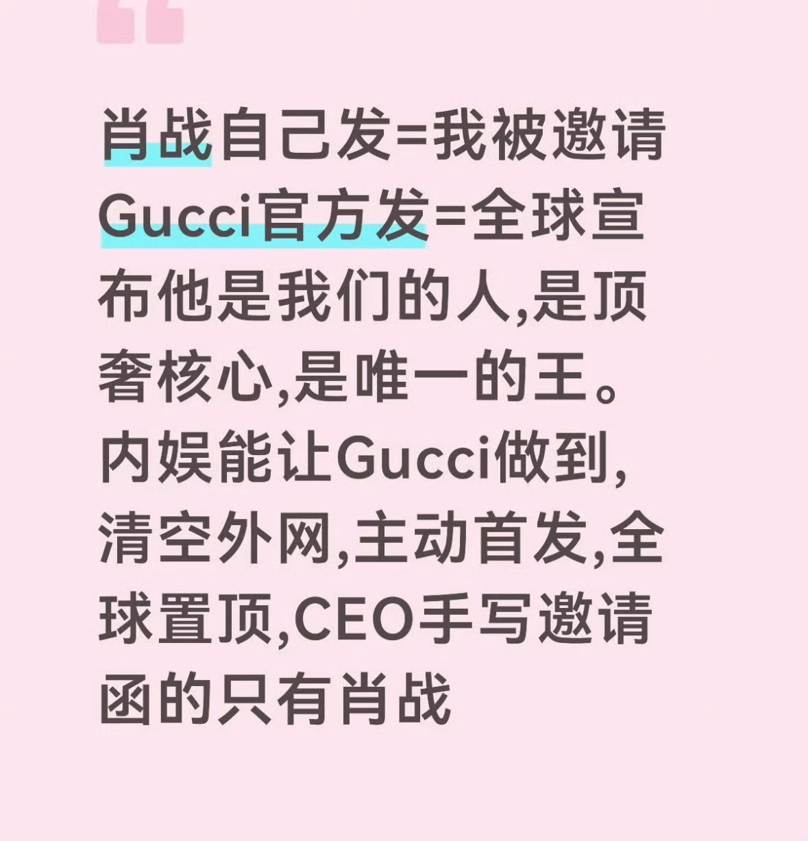 Gucci晒肖战邀请函继连续三年超顶看秀待遇之后,今年更是由官方发博晒邀请,又一