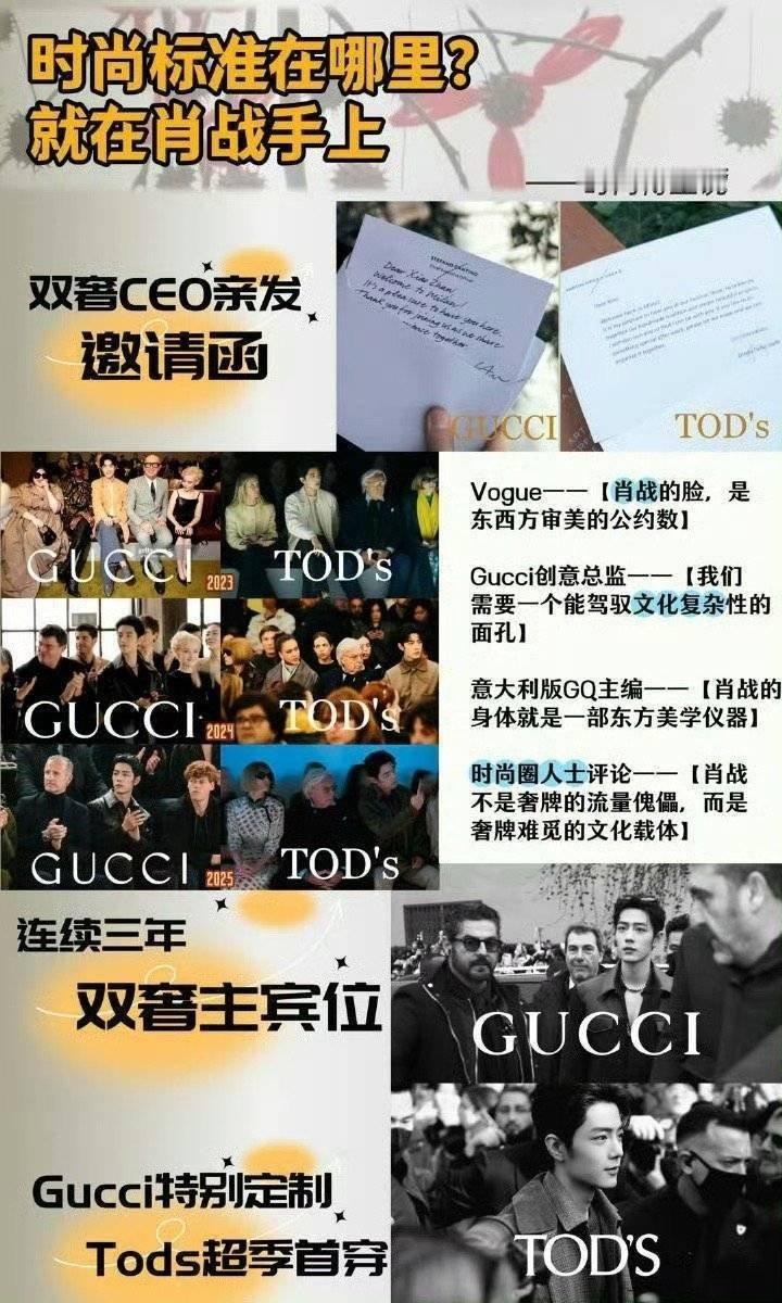 Gucci晒肖战邀请函继连续三年超顶看秀待遇之后,今年更是由官方发博晒邀请,又一次解锁了顶级待遇,全球影响力可见一斑真·内娱时尚待遇开创者