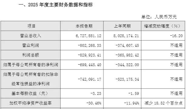 2025年,天合光能实现营业总收入672.79亿元,较上年同期减少16.20%;归属于母公司所有者的净利润-69.94亿元,上年同期为-34.43亿元;加权平均净资产收益率-30.46%,较上年同期减少18.52个百分点。