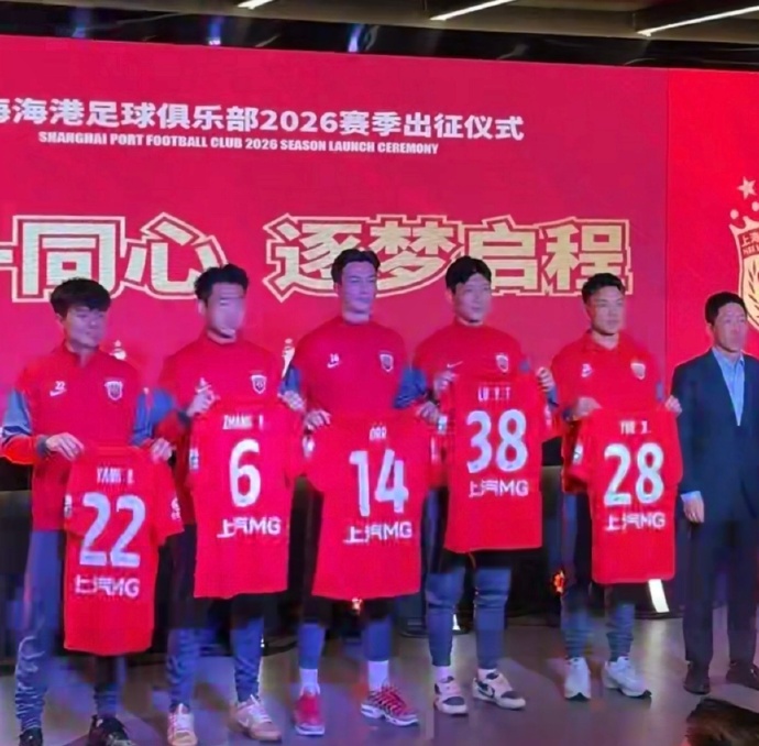 虎扑02月27日讯博主“电闪雷鸣的天空_666”晒照,新赛季的上海海港出征仪式今日举行,其中一个环节是8名冬窗新援的亮相仪式,他们选择的球衣号码随之公布。