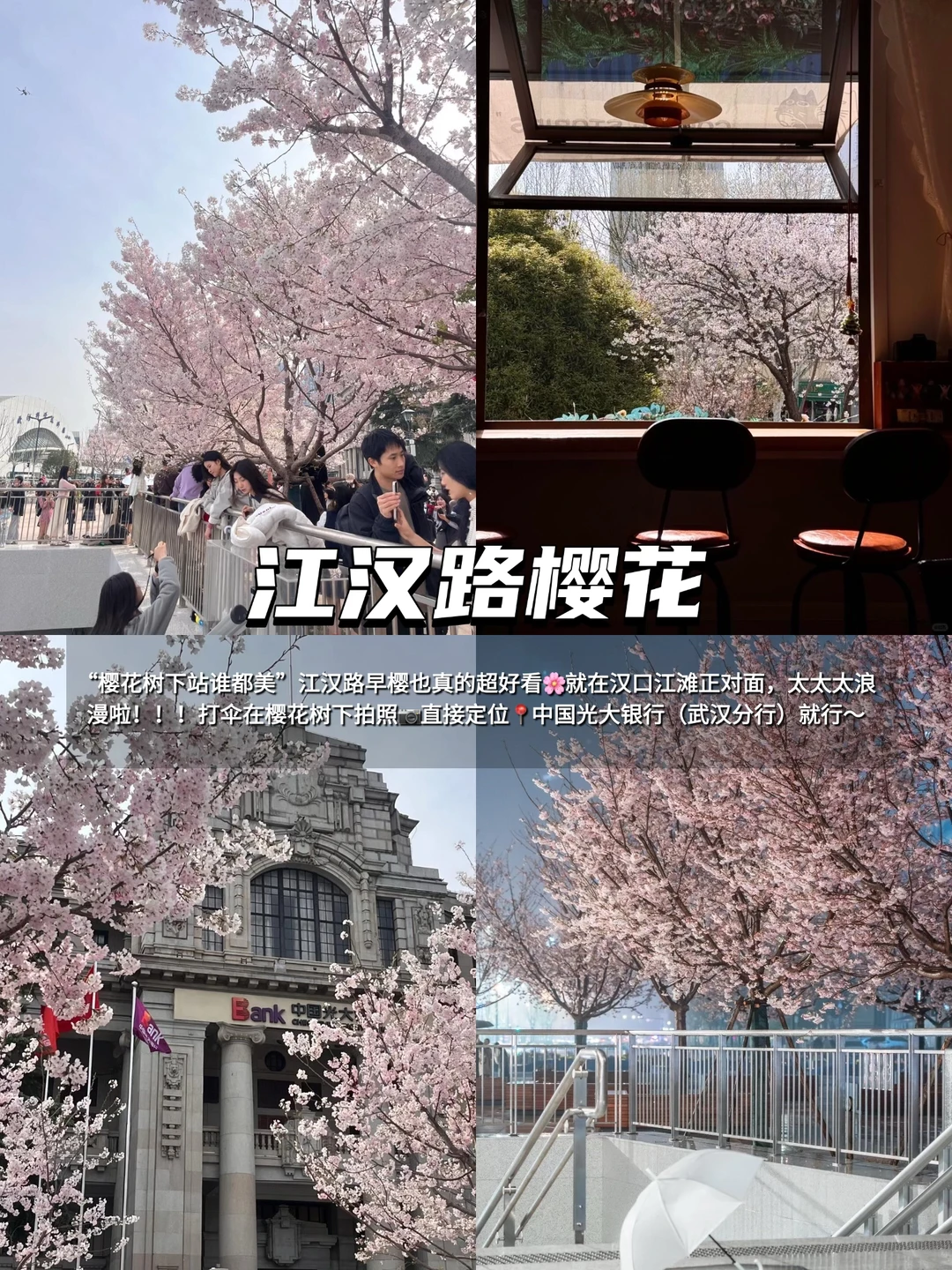 🌷就在汉口江滩对面,樱花树下站着拍,打一把透明伞,复古建筑+樱花同框,很出片好浪漫💕