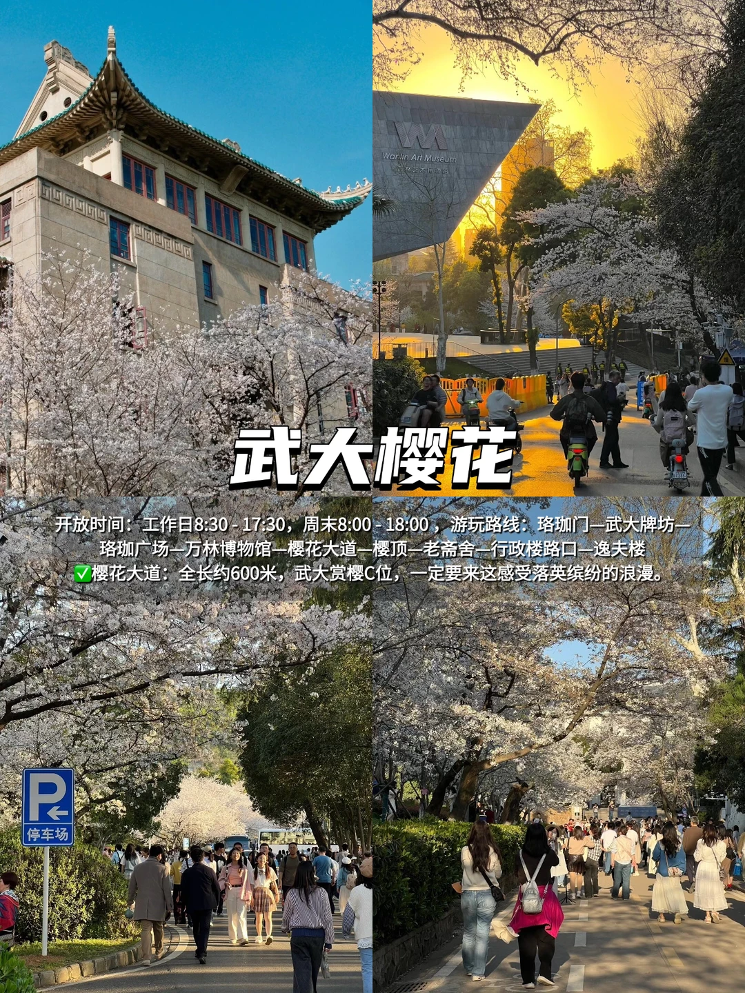 ‼️Tips:工作日8:30-17:30,周末8:00-18:00开放,记得提前预约;路线推荐:珞珈门→武大牌坊→珞珈广场→万林博物馆→樱花大道→樱顶