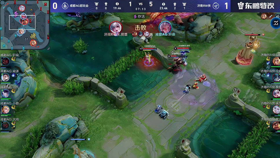 下路爆发团战,AG中上野阵亡,被RW打出1换3