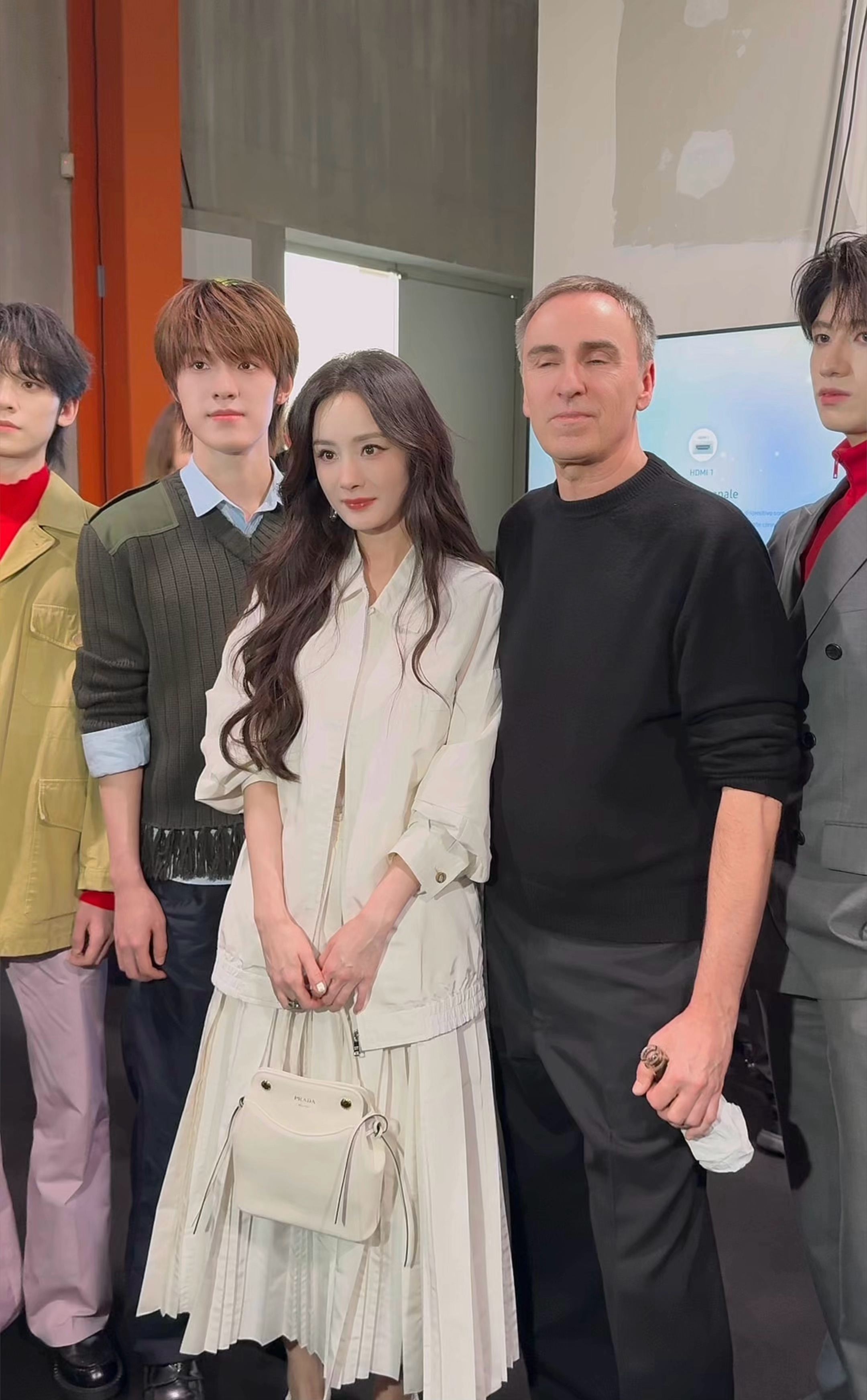 PRADA 2026秋冬女装系列大秀,昨日于米兰时装周盛大落幕。品牌代言人杨幂以纯白衬衫裙造型亮相秀场,与满具青春活力TOP登陆少年组合成员们惊喜同框。杨幂登陆少年组合Prada大秀同框