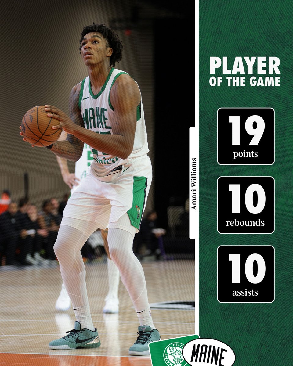 全场比赛,凯尔特人球员阿马里-威廉姆斯得到了19分10篮板10助攻。