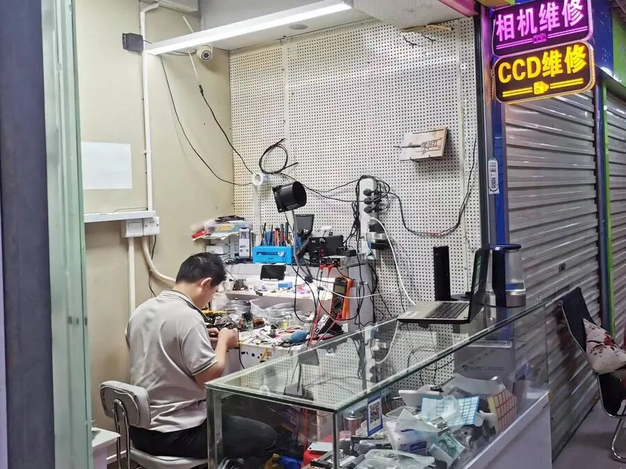 △在深圳华强北,两名年轻人在挑选CCD相机