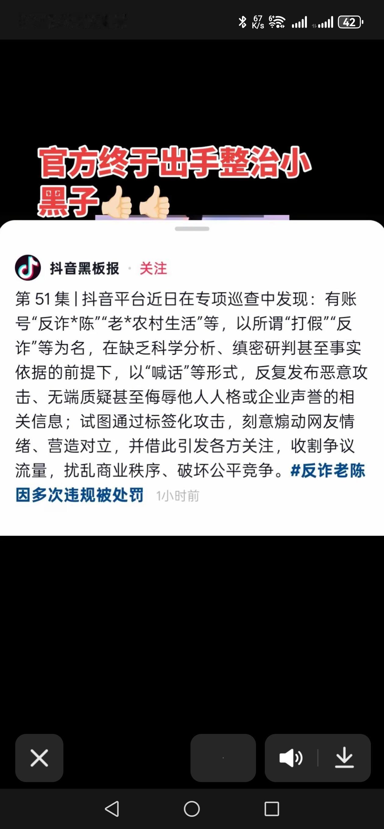 抖音雷霆出手,惩治不良自媒体,这个叫反诈老陈的,被抖音彻底封杀了。 主要原因是恶意蹭董宇辉的流量获利,典型的事件是广西行之前,他号称要买完广西行所有的产品拿去检测,以此来拿捏董宇辉的证据,这种恶意炒作,居心不良,引起民众极大反感。 此外,他还长期攻击董宇辉和污蔑与辉同行的产品,却又拿不出事实证据,这种人说白了,就是为了自己能够吸引人过来,到他的地头上买货,赤裸裸一个唯利是图的小人。 人在做,天在看,抖音绝不会纵容这种破坏网络生态环境的黑子只存在,这个好了,160万粉丝归0,再也不能坑蒙拐骗了。