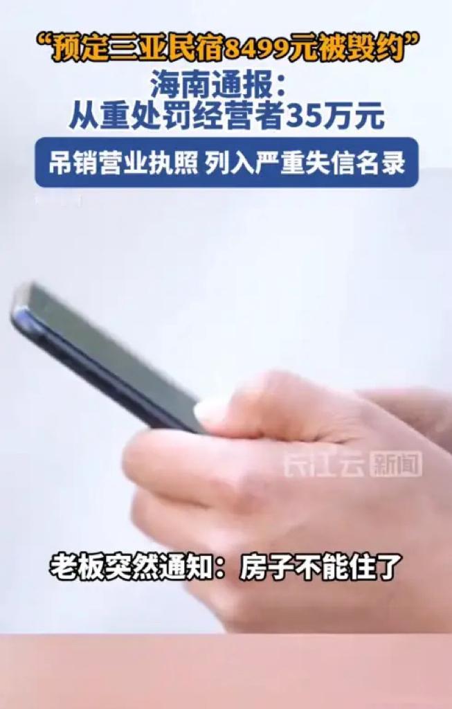 “为了多赚几万块,这下彻底凉了!”三亚民宿老板春节前毁约,想把8499元的订单退了涨价到3万,结果等来的不是暴利,而是35万天价罚单、营业执照被吊销,还被拉进了黑名单。李先生一家虽然临出发前被放了鸽子,但三亚监管部门这一波操作,网友直呼:解气! 北京的李先生是个“老三亚”了,每年冬天都习惯带着一家老小去那边待一阵子,躲躲北方的冷空气。去年12月6日,他熟门熟路地在平台上订了海棠湾的一个四居室民宿,从1月26日住到2月14日,一共19个晚上,总共才花了8499元。这个价格放在春节旺季,简直是捡到宝了。 李先生当时还挺高兴,想着这次又抢到了实惠。可谁知道,1月25日那天,也就是他们一家收拾好行李准备第二天出发的时候,民宿老板突然打来电话,说房间满了,住不了了。李先生还没反应过来,订单就被取消了。 他当时就火了:“我两个月前就订好了,你现在说满就满?”李先生多了个心眼,上网一查,好家伙,同一家民宿、同样的时间段,现在挂出来的价格已经涨到了3万多。这哪是没房啊,分明是看着别人涨价眼红了,觉得之前的合同签便宜了,想毁约卖高价。 说实话,春节涨价大家都理解,毕竟供需关系摆在那。但既然接了单、收了钱,那就是合同成立了。看着别人涨价就眼红,把之前的承诺当屁放了,这不仅是贪心,是连最基本的商业信誉都不要了。 李先生也没惯着这毛病,直接就把这事投诉了。他原本也就是想出出气,没想到这一投诉,踢到了铁板上。 三亚当地的监管部门很快就介入了。更让李先生没想到的是,三亚放心游平台直接启动了先行赔付,先把他的损失给赔了。但这还没完,2月26日,海南省市场监管局在新闻发布会上正式通报了这件事的处理结果:民宿老板因为未按合同履约、损害消费者合法权益,被处以35万元罚款,吊销营业执照,还被列入了严重失信名录。 这一套组合拳下来,民宿老板彻底懵了。本来想多赚个几万块,结果罚款就是35万,生意还做不成了,以后贷款、出行都受限制。这哪是赚钱啊,这是把自己往火坑里推。 有网友给算了一笔账:“毁约能多赚多少?就算按3万算,也就多赚两万多。现在好了,35万罚款+吊销执照,这买卖亏到姥姥家了。” 其实从法律角度看,这事也跑不了。民宿老板单方面毁约,根据《民法典》和《消费者权益保护法》,不仅要退房费,还得三倍赔偿。李先生那8499元如果走法律程序,不仅全款能退,还能再要将近25000的赔偿金。 但这次三亚监管部门为啥出手这么狠?直接用行政手段罚了35万?因为春节是三亚旅游的黄金期,一个民宿老板这么搞,影响的不仅是自己,是整个三亚的口碑。监管部门这是在告诉所有人:谁砸三亚的招牌,我就砸谁的饭碗。 说真的,有时候真搞不懂有些商家的脑回路。互联网时代,消费者的口碑就是生命线。为了一时的暴利,把自己的信誉毁了,值吗?李先生这事一曝光,全国人民都知道了这家民宿,以后谁还敢住? 做生意,说到底做的就是回头客。诚信这东西,丢的时候轻轻松松,想再捡起来,难如登天。这个民宿老板现在估计肠子都悔青了,可惜,世上没有后悔药。 对于这件事,你怎么看?是觉得罚得太狠了,还是觉得就该这么办?如果是你遇到这种情况,你会选择忍气吞声还是硬刚到底?欢迎在评论区聊聊。 (来源:海南省市场监管局新闻发布会、三亚放心游平台)