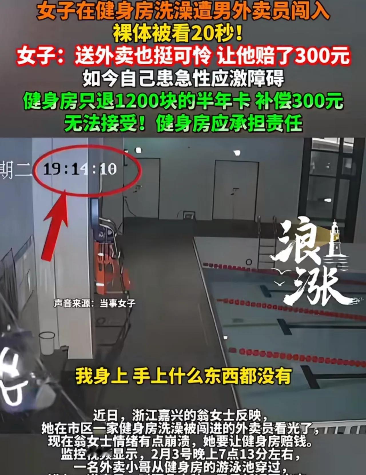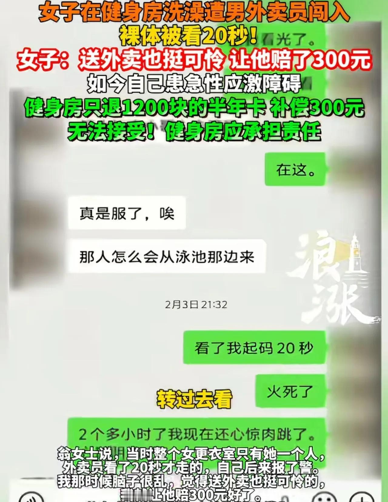 “我洗澡时被外卖员看了20秒,健身房却说他们很冤?”女子索赔遭拒后曝光,网友吵翻