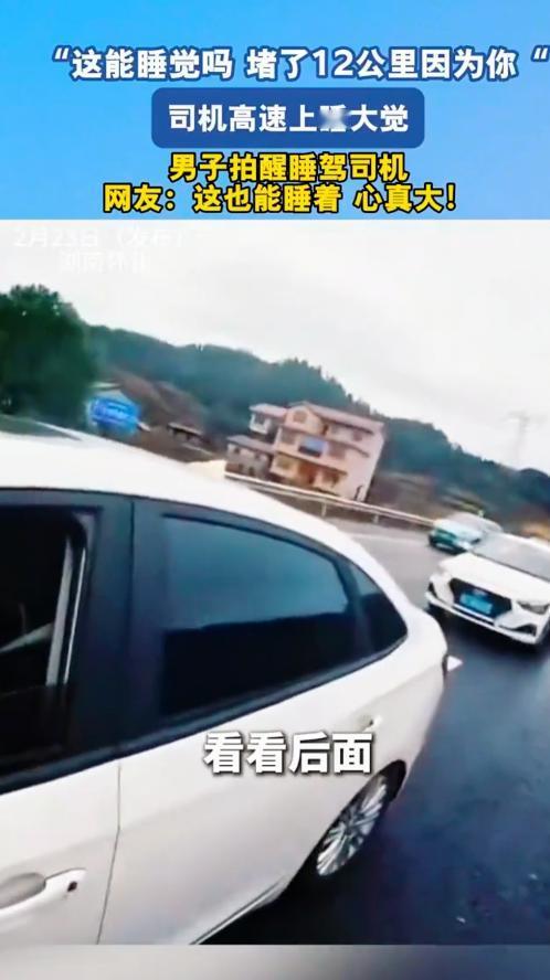 “心真大!”2月23日,湖南怀化,一男子开车上高速,因为太困,竟直接停车开始睡觉,后面的车不知道什么情况,只能等候,短短40分钟,就堵出了12公里,数千辆车因此耽搁,还是交警上前将男子叫醒,他才知道发生了什么!网友:睡得真香! 事情发生在2月23日,春运返程的高峰还没过去,沪昆高速湖南怀化段,原本应该顺畅通行的道路,突然被死死堵住,数千辆车排起了长队,整整40分钟,一动也不动,不管是车里赶着回去上班的人,还是带着老人孩子返程的家庭,都急得不行,有人在车里直跺脚,有人一遍遍查看导航,嗓子都快急哑了,可前面的车流,依旧纹丝不动。 打开导航软件,屏幕上那一片刺眼的红,红得让人心里发毛。12公里的车龙,乖乖地趴在高速上,像一条被抽干了力气的巨蟒,一眼望不到头,后方的焦躁情绪,像病毒一样快速扩散,有人忍不住把脖子伸出窗外,拼命往前张望,想看看前面到底发生了什么,有人按捺不住脾气,死命按着喇叭,刺耳的喇叭声此起彼伏,汇在一起,刺得人太阳穴突突直跳,整个高速上,全是满满的烦躁和无奈。 所有人都在猜测,前面肯定出大事了,要么是大货车侧翻,挡住了整个车道,要么是多辆车连环追尾,场面混乱不堪,这种毫无征兆的交通瘫痪,让每一个被困在车里的人,都格外焦虑,毕竟春运返程,大家都赶时间,谁也不想被堵在半路,耽误行程。 可谁也没想到,等交警骑着铁骑,好不容易从密密麻麻的车缝里挤到最前面,看到的场景,却比任何剧本都荒唐,压根没有大家猜测的事故,只有一辆白色轿车,安安静静地杵在行车道的正中央,既没有开双闪警示,也没有放置三角警示牌,就那么大喇喇地横在路中间,显得格格不入,像是从另一个时空穿越过来的一样,挡住了所有车辆的去路。 交警凑近一看差点没气晕过去,驾驶座上一个中年男子正靠着椅背,眼睛闭得紧紧的,呼吸平稳,睡得那叫一个踏实,嘴角甚至还带着一丝放松的弧度,身后几千辆车的发动机在轰鸣,喇叭声都快把耳膜震穿了,周围全是焦躁的催促声,可这位大哥愣是能在高速公路的大动脉正中央,睡出一种在自家席梦思上的松弛感,这份心,真的大到离谱。 交警无奈又着急,反复敲打着车窗,还拉响了警笛,警笛声震天响,在空旷的高速上格外刺耳,折腾了好一阵子,才总算把这位“睡神”从睡梦中叫醒,男子醒来后,揉着惺忪的睡眼,一脸茫然地看向窗外,眼神里满是困惑,不知道发生了什么。 他先是愣了几秒,脸上满是茫然,紧接着看到窗外的交警,又露出了惊愕的表情,等他推开车门下车,回头一看那一眼望不到头的车流,还有交警铁青的脸色,这才彻底清醒过来,终于明白自己闯了多大的祸,脸上的茫然瞬间变成了慌乱和愧疚。 后来男子自己交代,前一晚他跑了一宿长途,压根没休息好,身体早就到了极限,开到怀化这段高速的时候,困意来袭,脑子里那根叫“侥幸”的弦突然断了,心里琢磨着就闭眼眯五分钟,撑一撑就能到下一个服务区,可他万万没想到,身体根本不听使唤,意识瞬间被浓浓的困意接管,一秒都没挣扎,就直接睡死过去了。 他以为的“眯五分钟”,竟然在高速行车道上睡了40分钟,而这40分钟直接导致了12公里的拥堵,数千辆车被耽搁,多少人因为他的一时侥幸,耽误了返程的行程,甚至可能耽误了重要的事情,说真的这哪里是简单的睡觉,这分明是在阎王殿门口打盹,拿自己和别人的生命当儿戏。 大家都知道,高速行车道是什么地方,那是时速能达到一百多公里的钢铁洪流,来往的车辆速度都很快,根本不是自家客厅的沙发,不是能随便停车休息的地方,他往行车道中间一停,就等于把身后几千人的行程全扣住了,把几千人的安全当成了赌注,更是把自己的命,直接交给了后车司机的刹车片。 想想都觉得后怕,万一后面有司机走神,或者同样犯困,没注意到前方停着的车,一头撞上来,那就不是简单的堵车了,很可能会引发连环追尾,造成车毁人亡的悲剧,到时候就不是耽误行程那么简单了,而是几个家庭的灭顶之灾。 这件事的处理结果很快就下来了:对男子罚款200元,驾驶证记9分。网上有人调侃,说这位大哥这一觉睡得“全网最贵”,40分钟就换来了200块罚款和9分,折合下来一分钟5块钱,比五星级酒店都贵。 这次的12公里车龙终于散了,高速交通也恢复了正常,但那个在高速行车道正中央酣睡的身影,却给所有春运返程的司机,结结实实扇了一记耳光,在公路上交通规则从来不是什么枷锁,而是实打实的保命符;服务区的存在,也不是多余的,而是让司机在体力透支之前,有个喘息的机会。