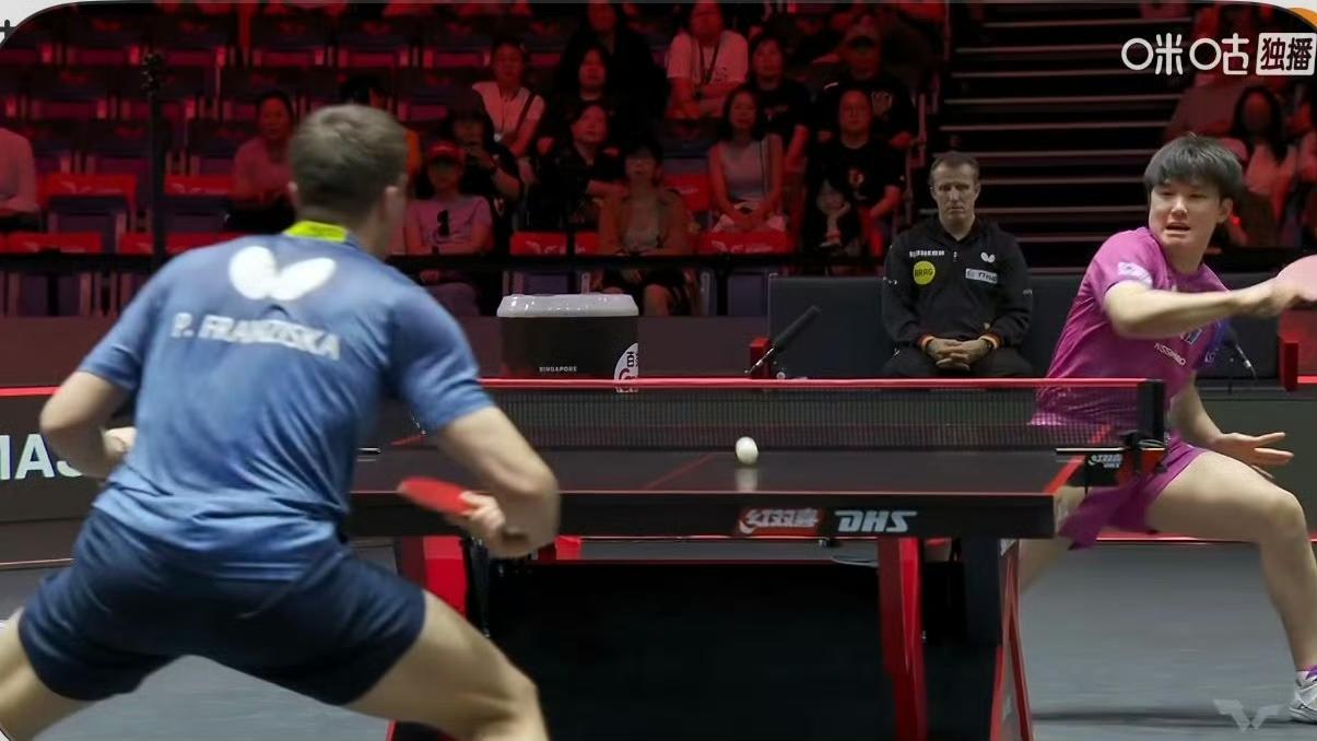 张本智和🇯🇵惨遭淘汰[捂脸]! 真该奖励小弗一个大鸡腿啊[捂脸],第十次交手终于打破败局。 刚刚,德国老将弗朗西斯卡🇩🇪恶战五局,3-2逆转击败张本智和🇯🇵,晋级2026WTT新加坡大满贯男单八强,五局比分为:6-11,11-7,11-7,6-11,11-8。 十次交手 第一次获胜,小弗心愿了了。 恭喜弗朗西斯卡,小弗打球很好看,且看打起来大开大合很过瘾,继续加油!