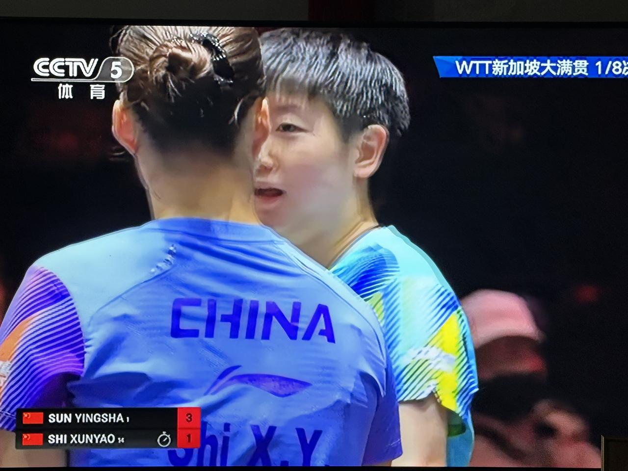 我心目中最喜爱的国乒球员是孙颖莎。 2026 WTT新加坡大满贯女单八分之一决赛赛场,孙颖莎对阵的是队友石洵瑶,意料之中,孙颖莎胜出顺利晋级。 比赛结束后,孙颖莎和石洵瑶双双灿烂地笑着,离开赛场时,两人边走边聊,这一幕很暖心,体现了友谊第一比赛第二的精神,在赛后接受采访时,孙颖莎高度赞扬了石洵瑶,话说得很好,情商很高,有格局!